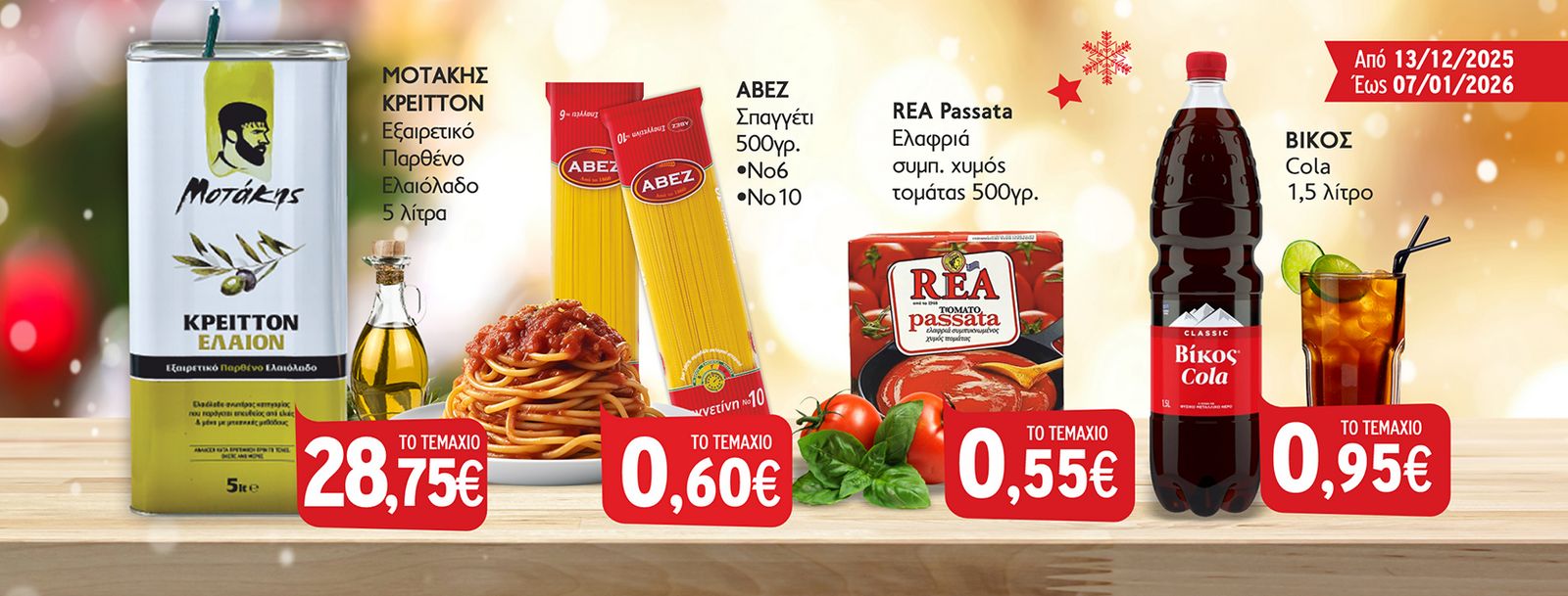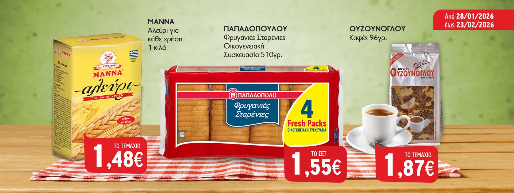 Βρείτε στο κατάστημά μας επώνυμα και ποιοτικά προϊόντα για όλες τις καθημερινές σας ανάγκες. Όλα μας τα προϊόντα χαρακτηρίζονται από την ποιότητα και τις χαμηλές τιμές. Σκοπός μας είναι να γεμίζετε το οικογενειακό σας καλάθι με το μικρότερο δυνατό κόστος για εσάς.